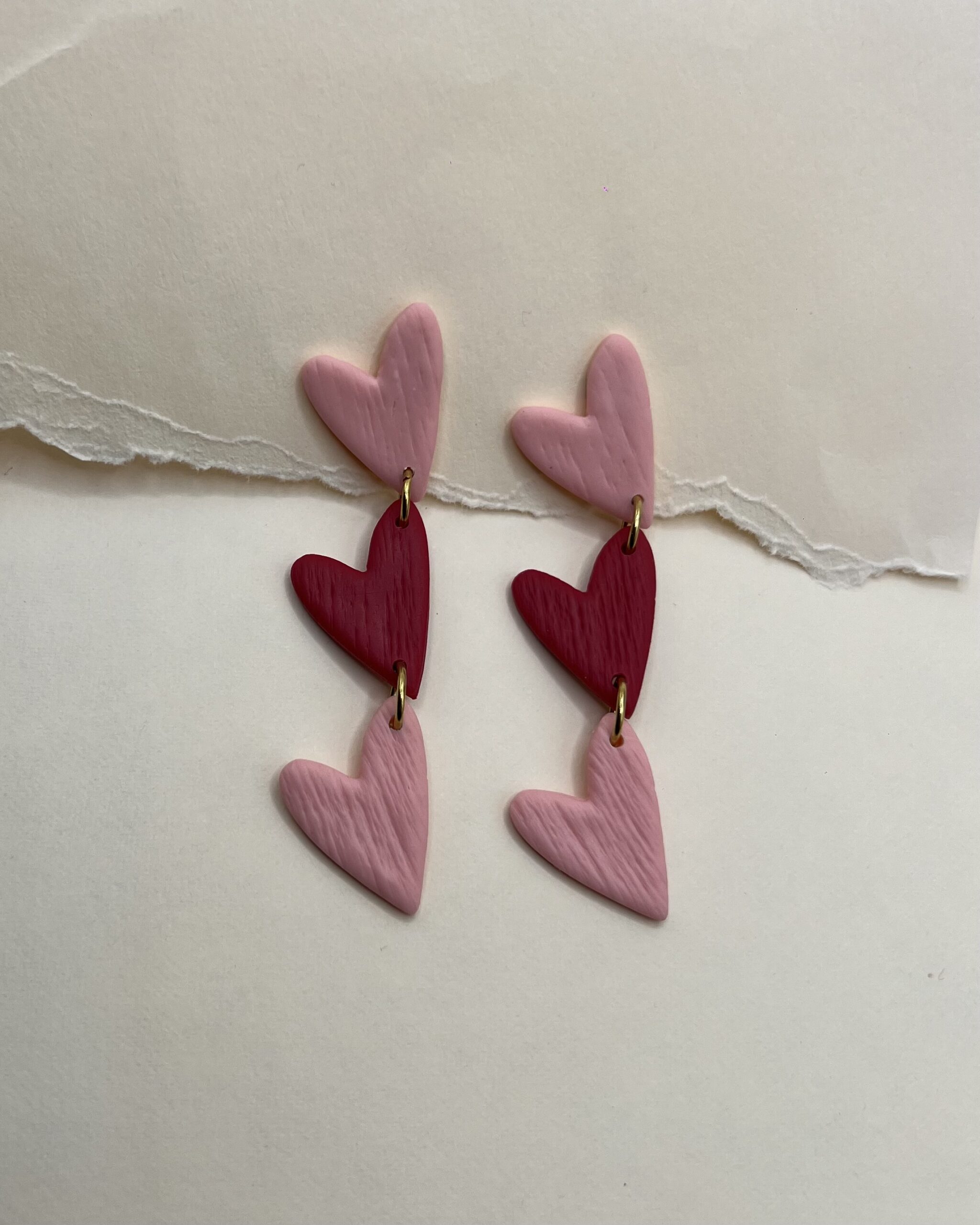 Pendientes de arcilla polimérica, enganche trasero acero quirúrgico (libre de alergias) y anillas de acero inoxidable de la colección San Valentín Amor.
