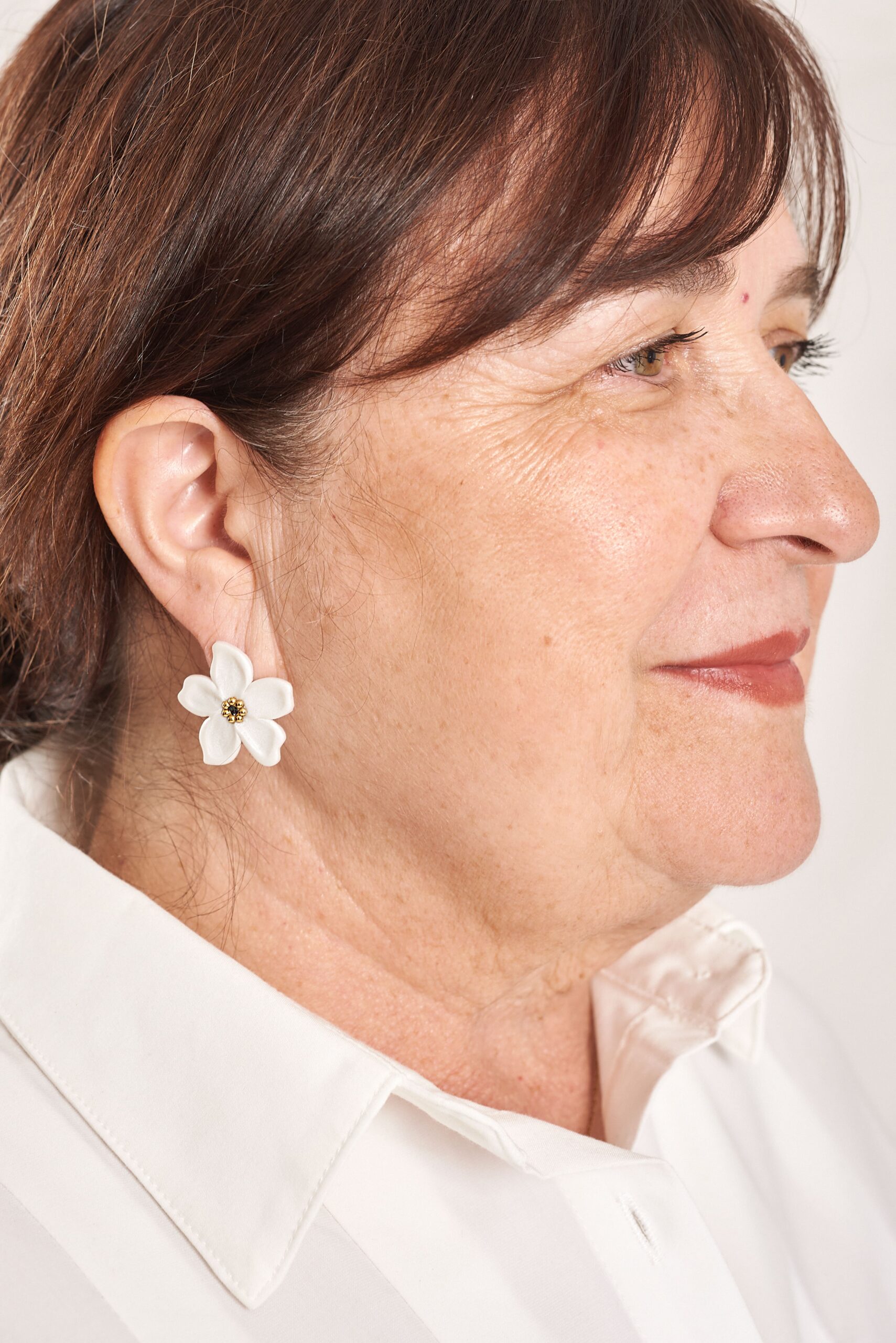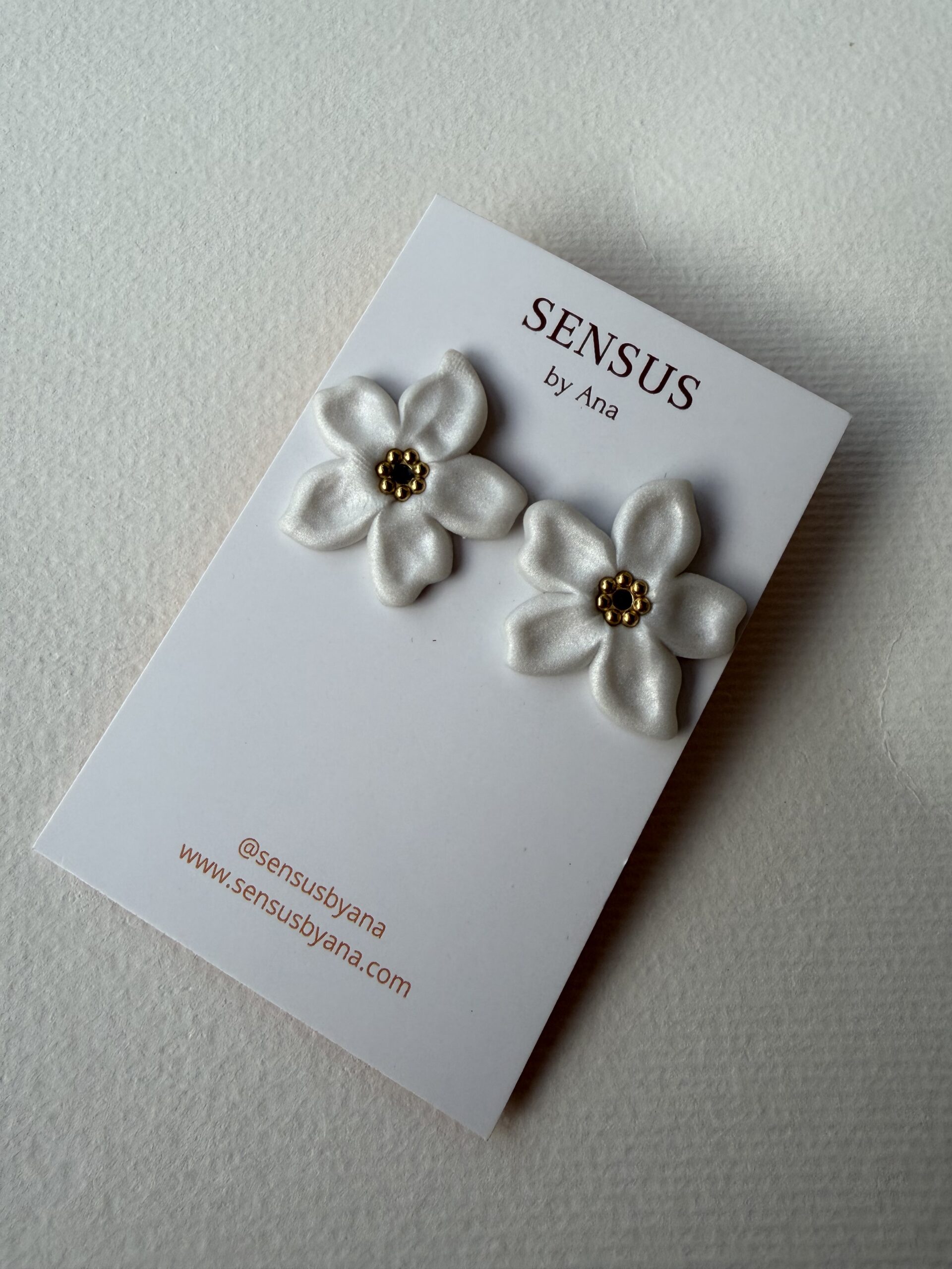 Pendientes de arcilla polimérica en nácar, lo que hace que tenga un brillo sútil y elegante