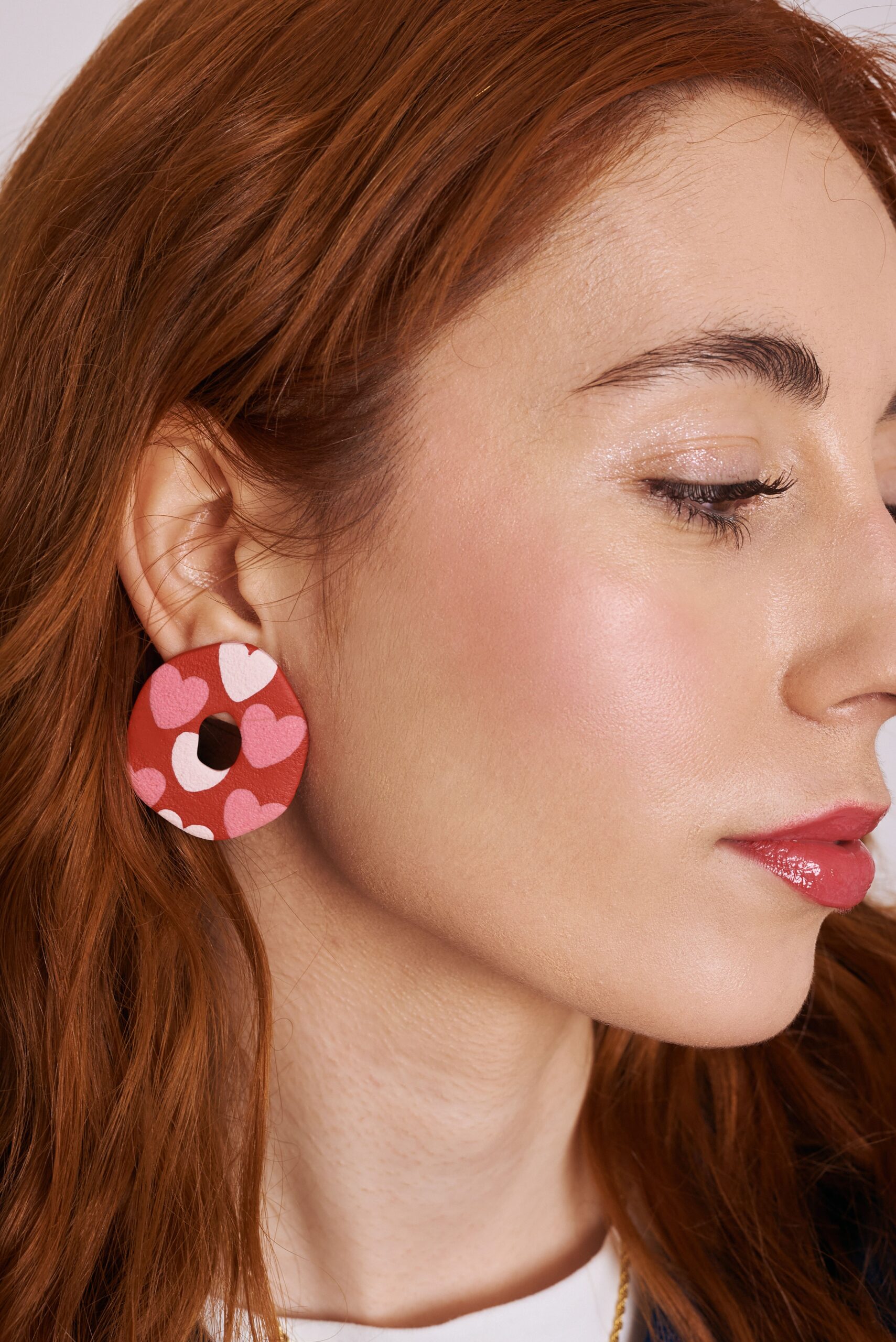 Pendiente en arcilla polimérica con estampado de corazones hecho a mano con la propia arcilla