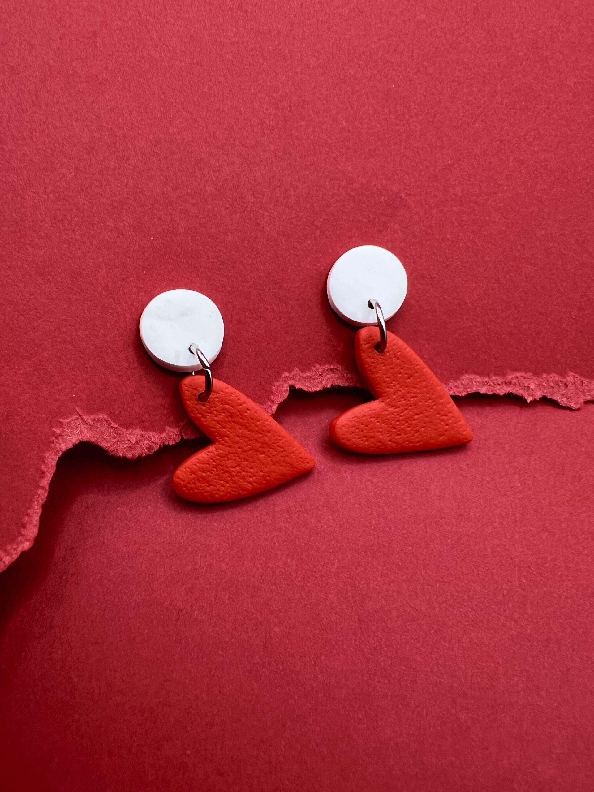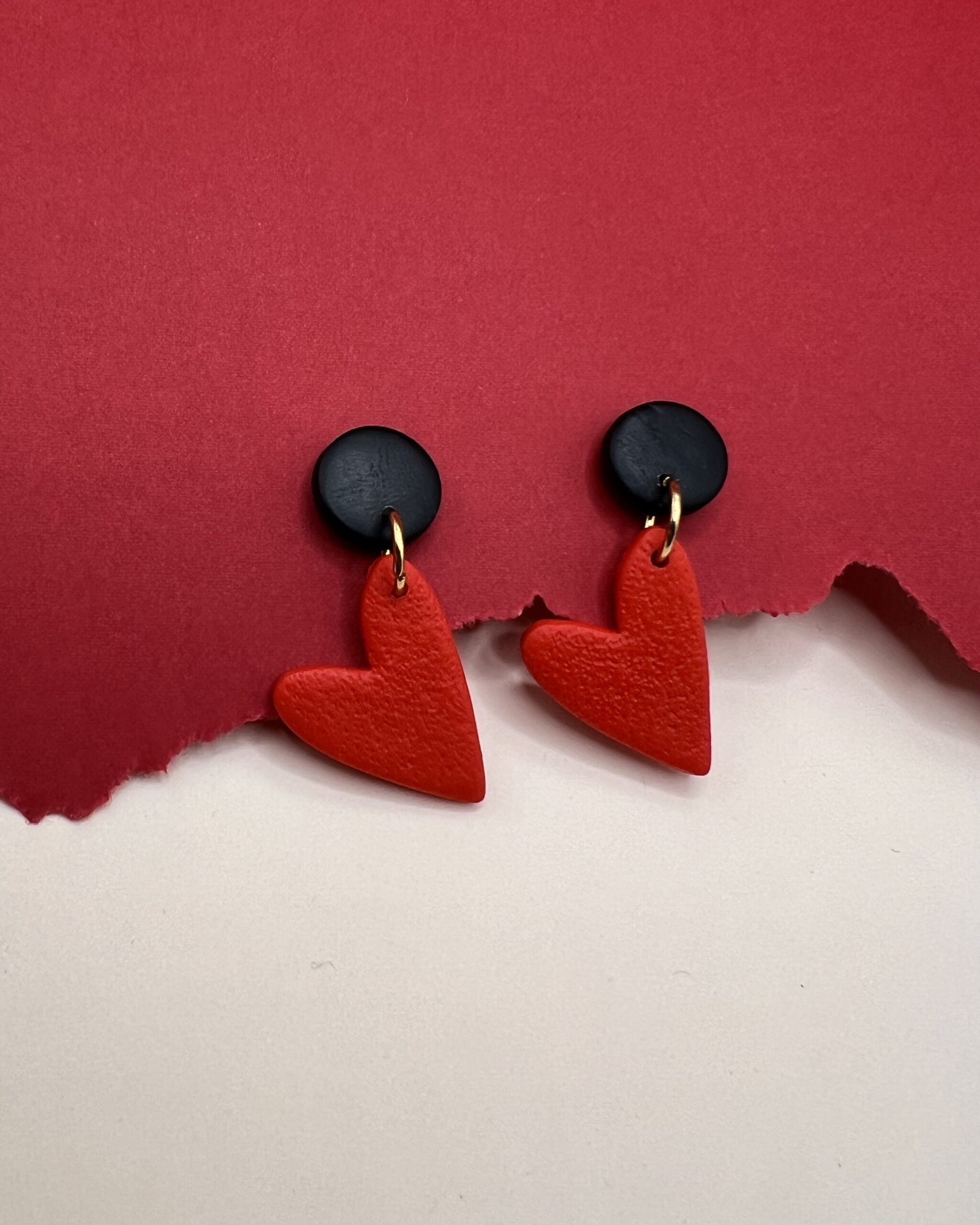 Pendientes de arcilla polimérica, enganche trasero acero quirúrgico (libre de alergias) y anillas de acero inoxidable de la colección San Valentín Amor.