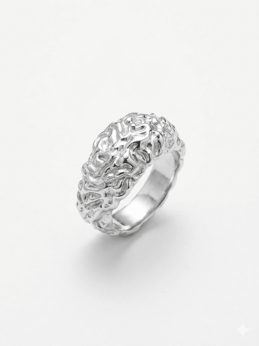 Anillo de diseño limitado, en acero inoxidable, color plateado