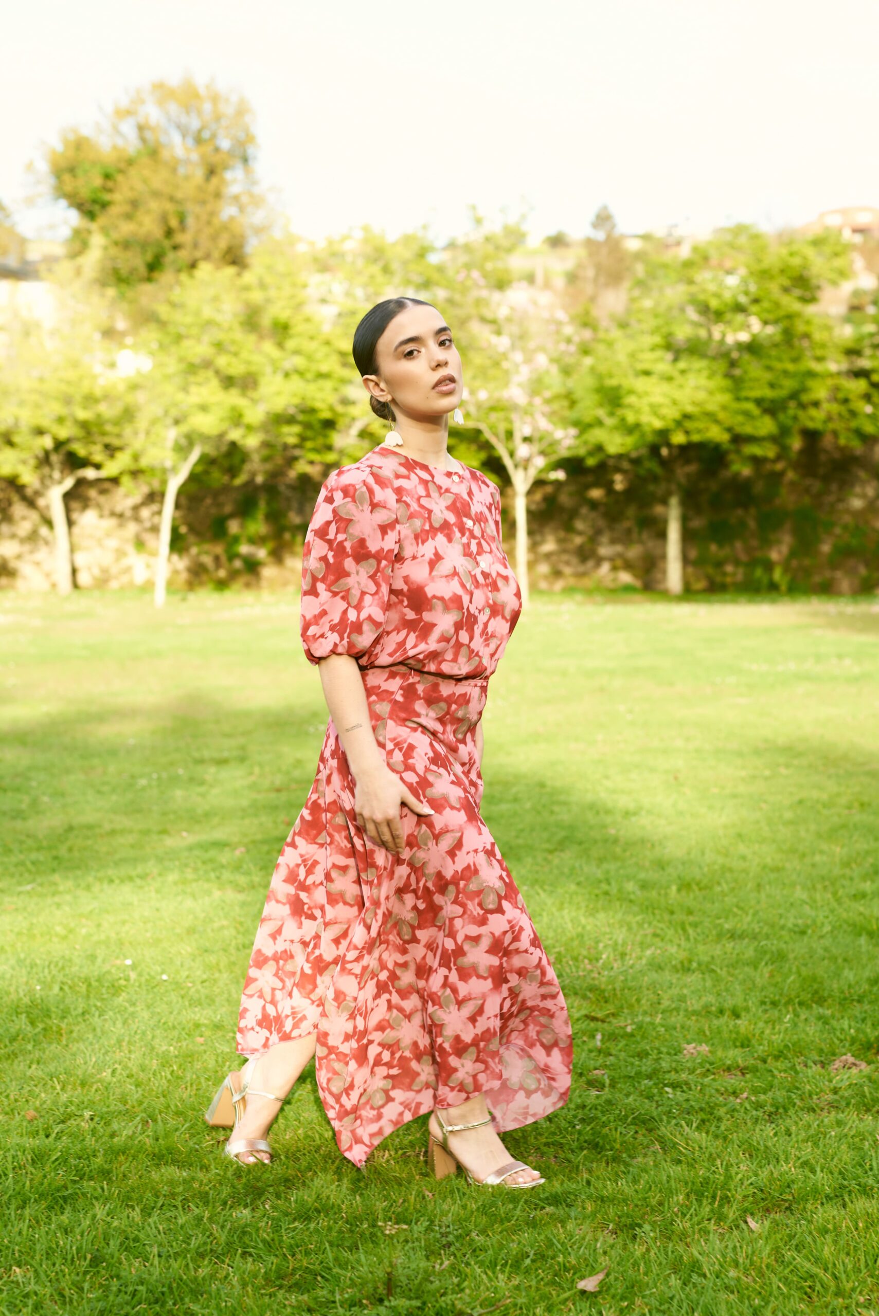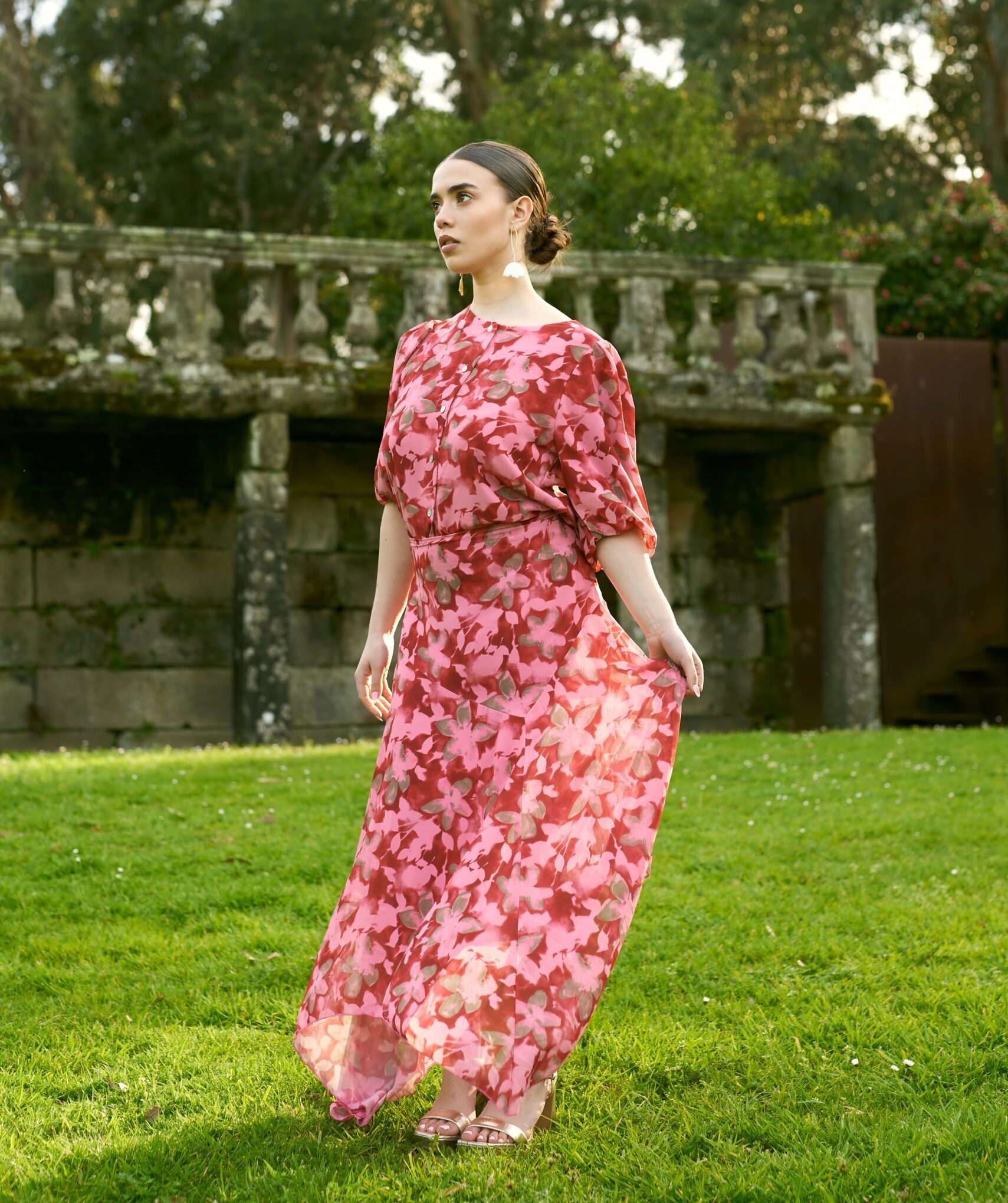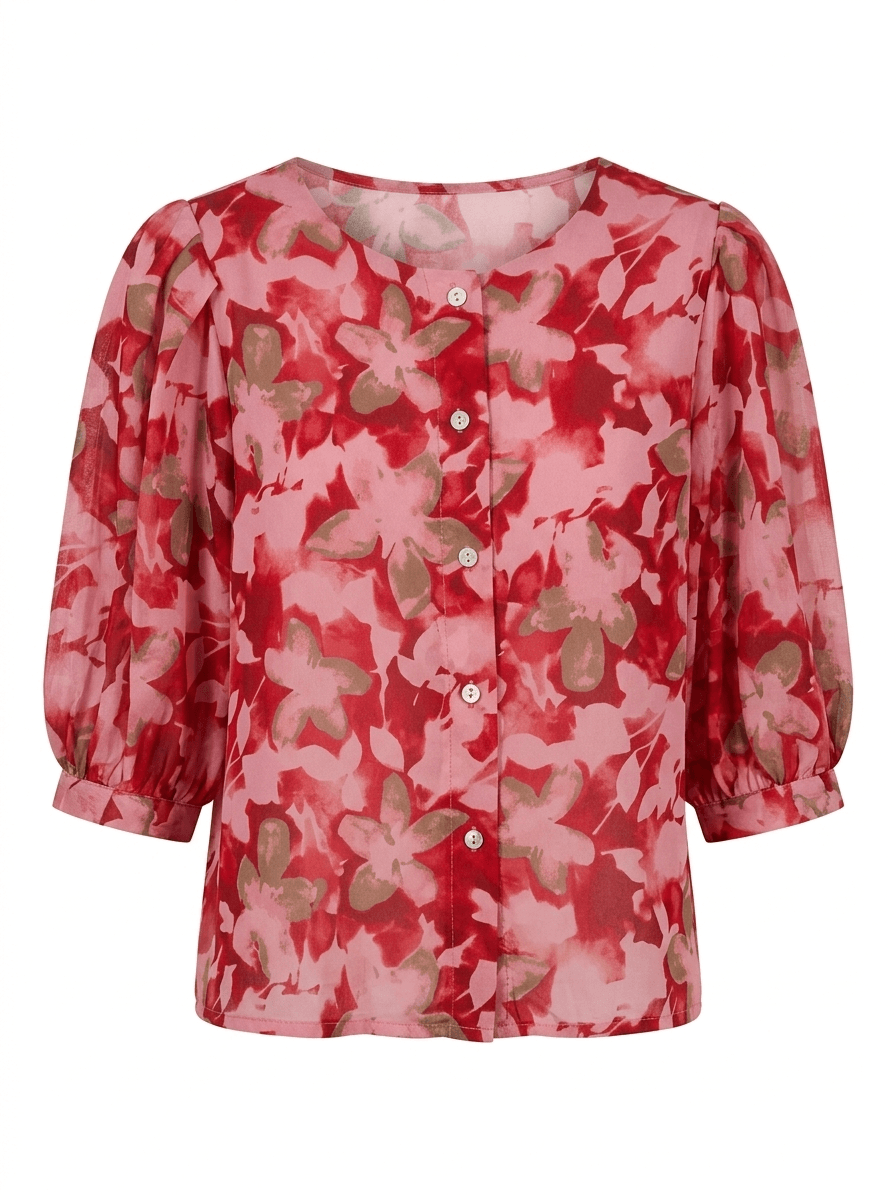 Blusa estampada de flores, efecto gasa, con muy buena caída y abotonada, permite llevarla abierta como sobrecamisa.