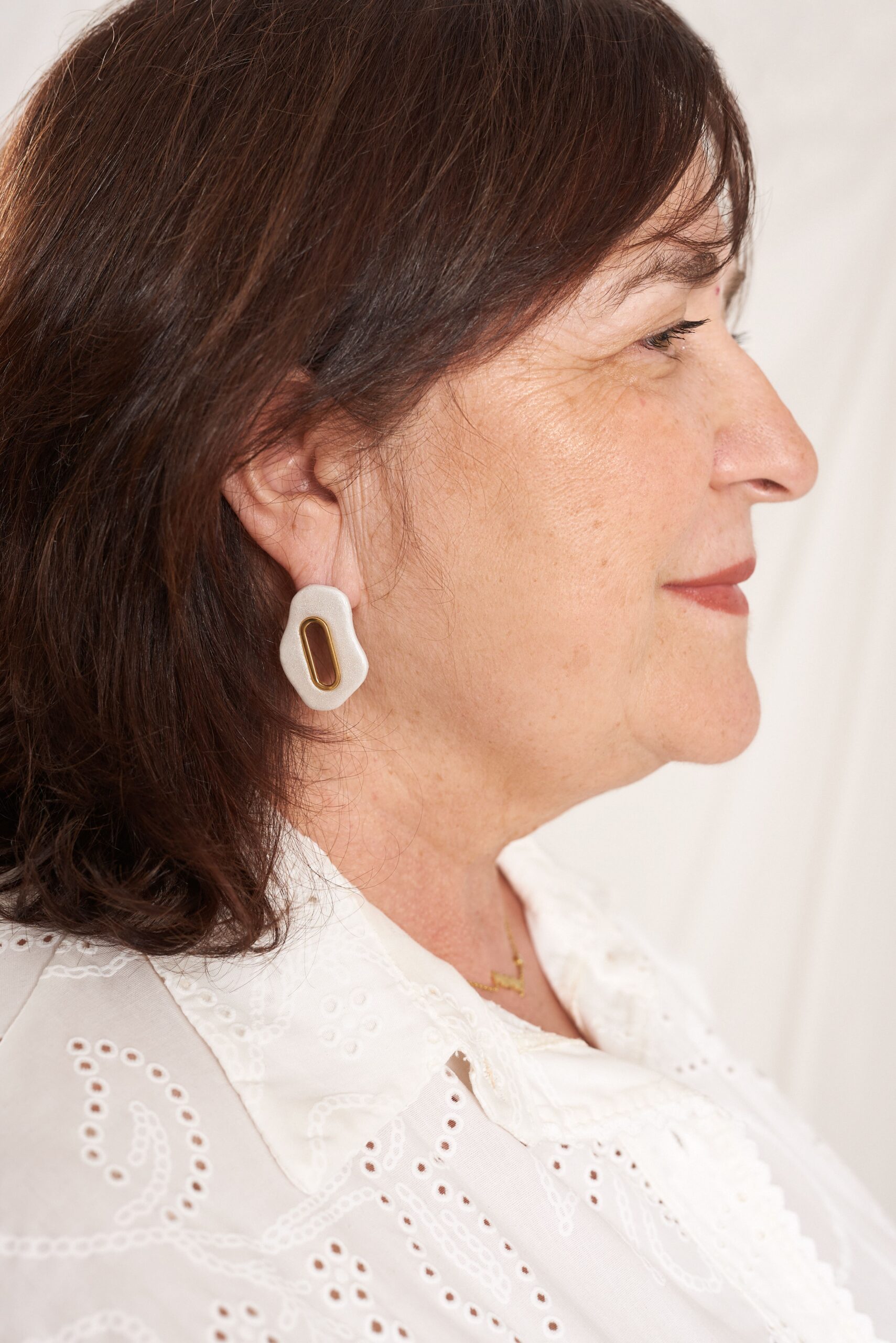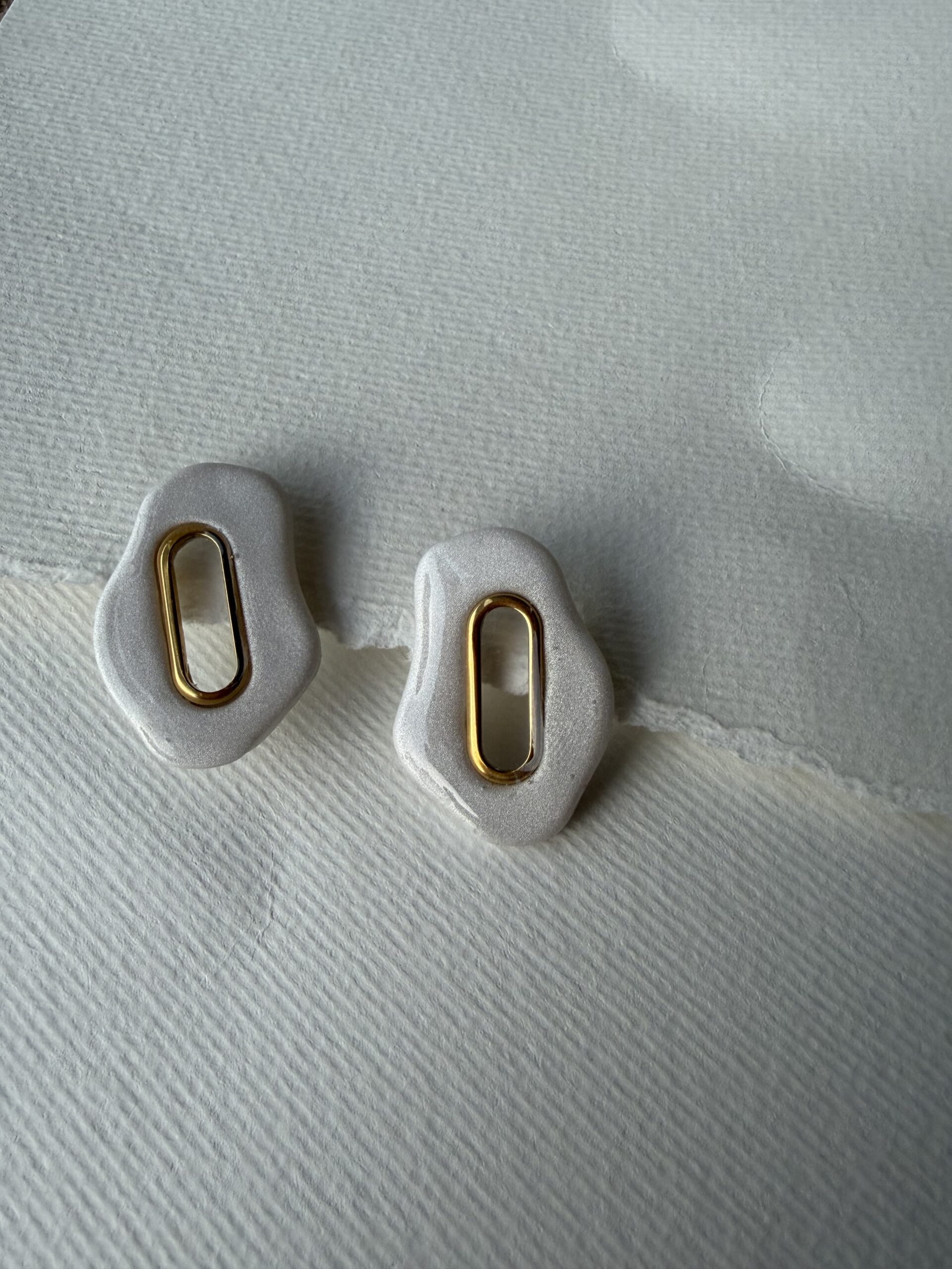 Pendientes en arcilla polimérica disponibles en nácar y negro, con un brillo para potenciar el diseño y elegancia de este modelo junto con la piezas de acero inoxidable