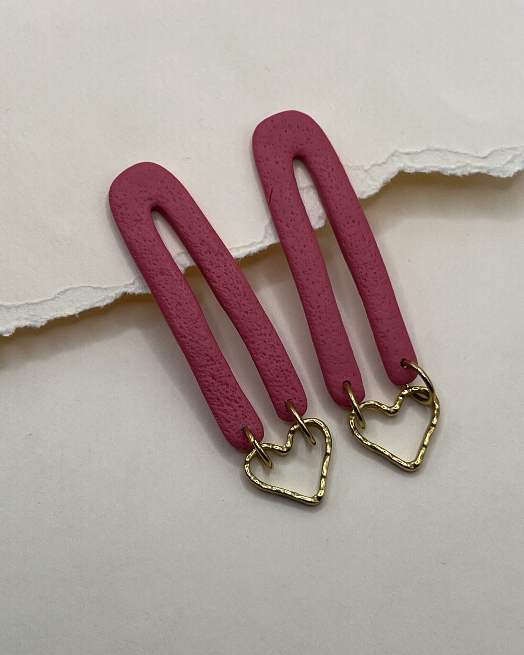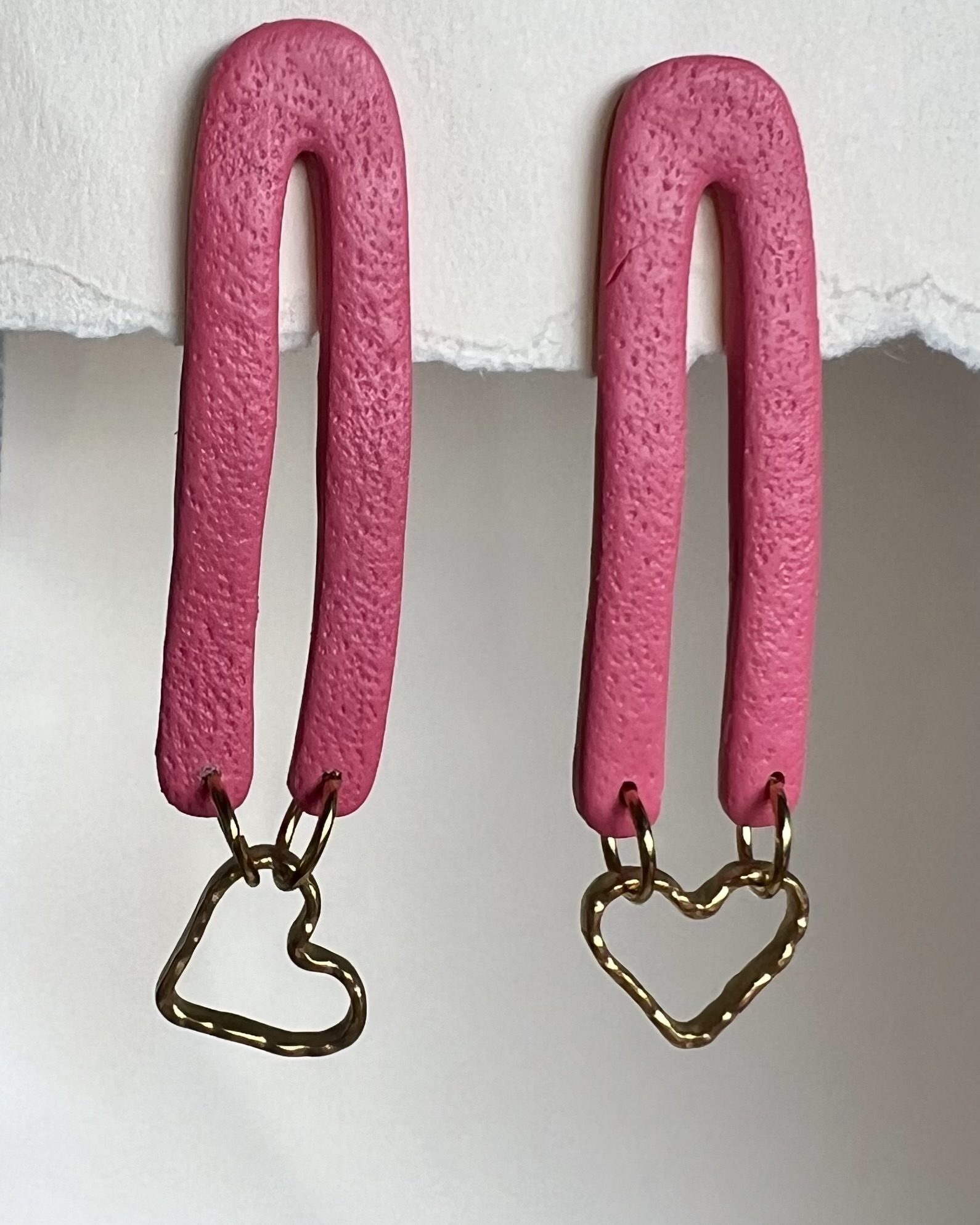 Pendientes de arcilla polimérica, enganche trasero acero quirúrgico (libre de alergias) y anillas de acero inoxidable de la colección San Valentín Amor.