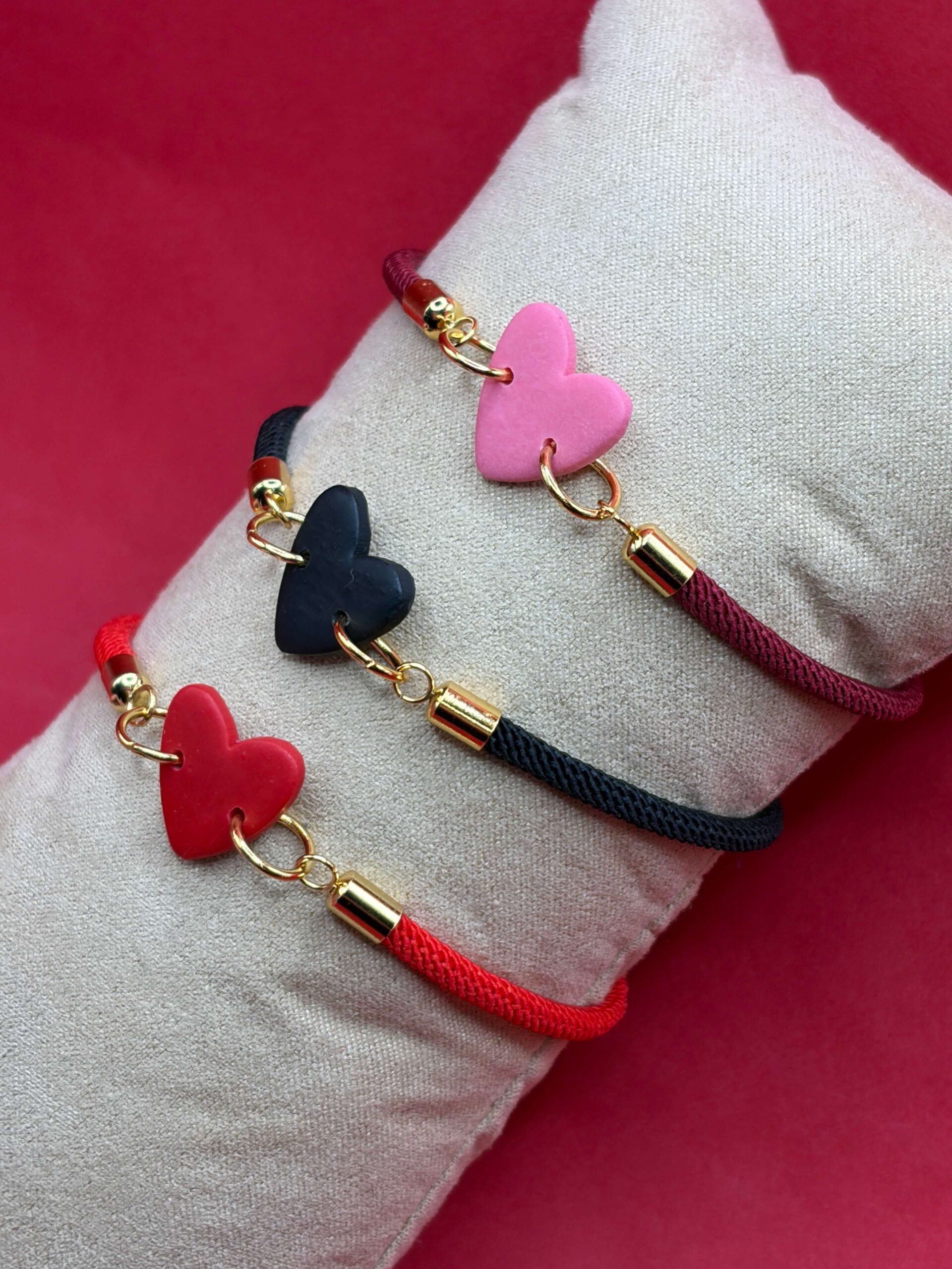 Pulsera en cordón a escoger el color, con las terminaciones en acero inoxidable al gusto, y añadiendo una pieza en el medio de arcilla polimérica.