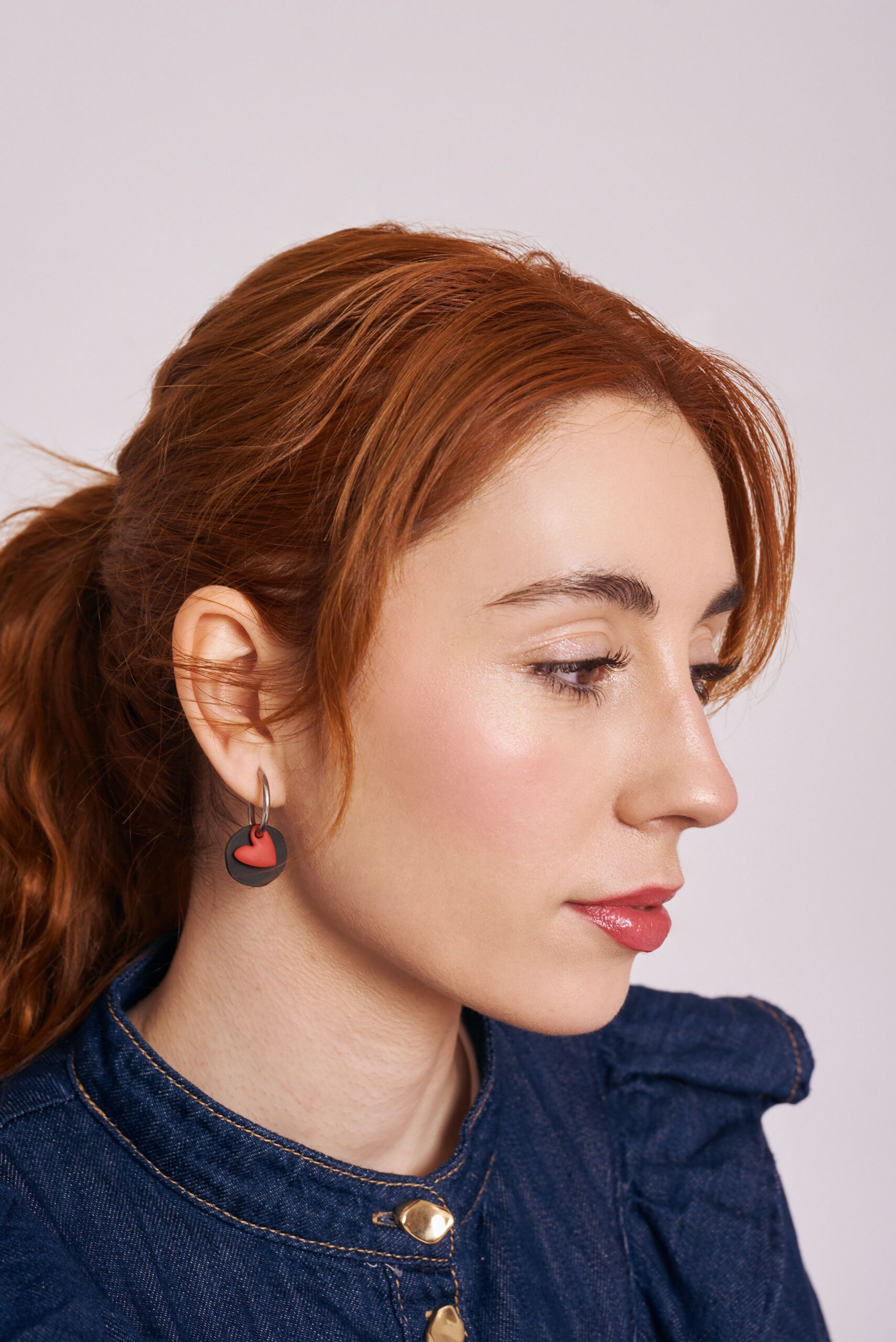 Pendiente de arcilla polimérica multiposición, tienes la opción de combinarlo a tu gusto (incluso desigual si me lo indicas en comentarios del pedido). Puedes llevar los aros sueltos, y combinar las piezas como quieras.
