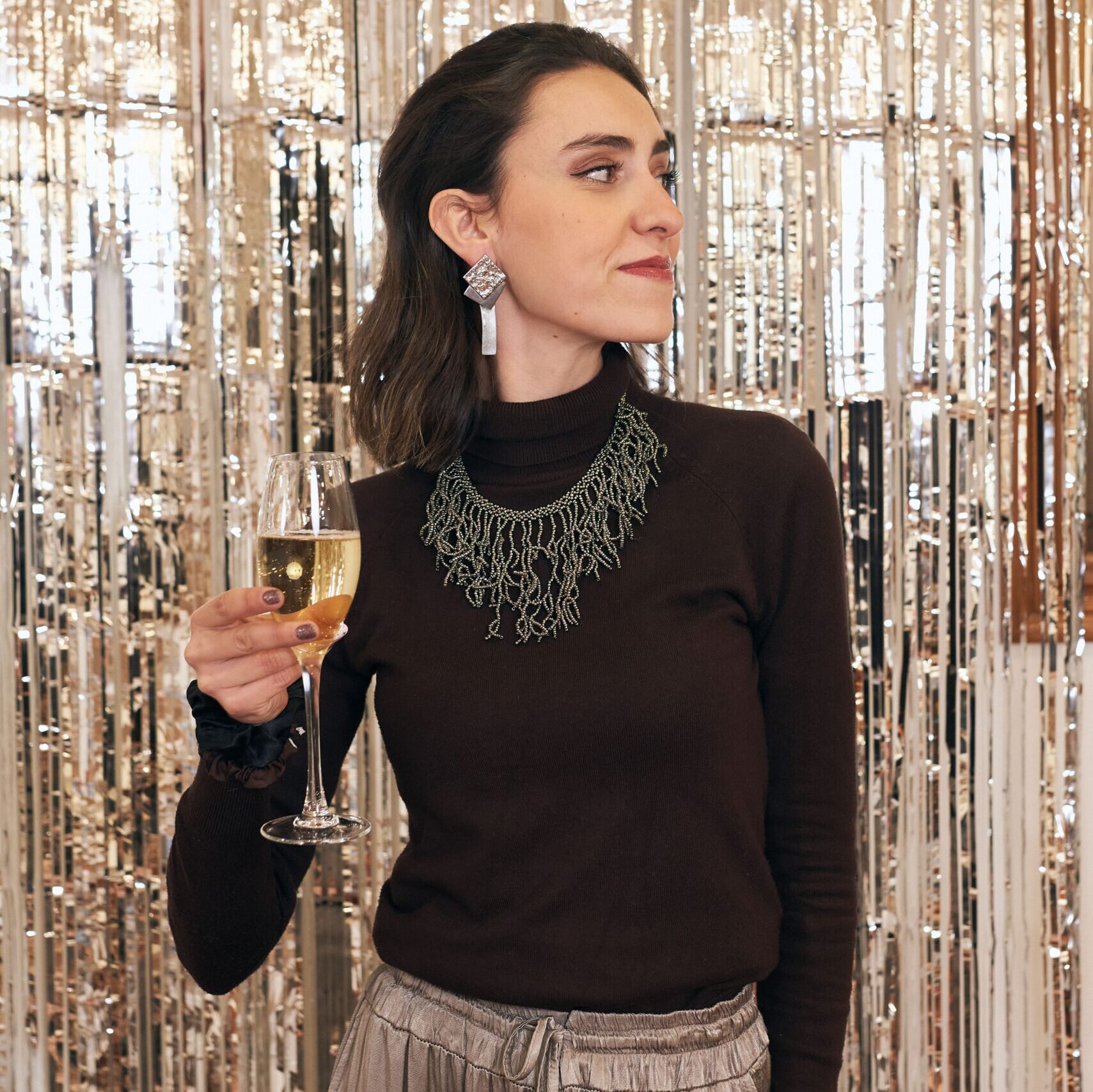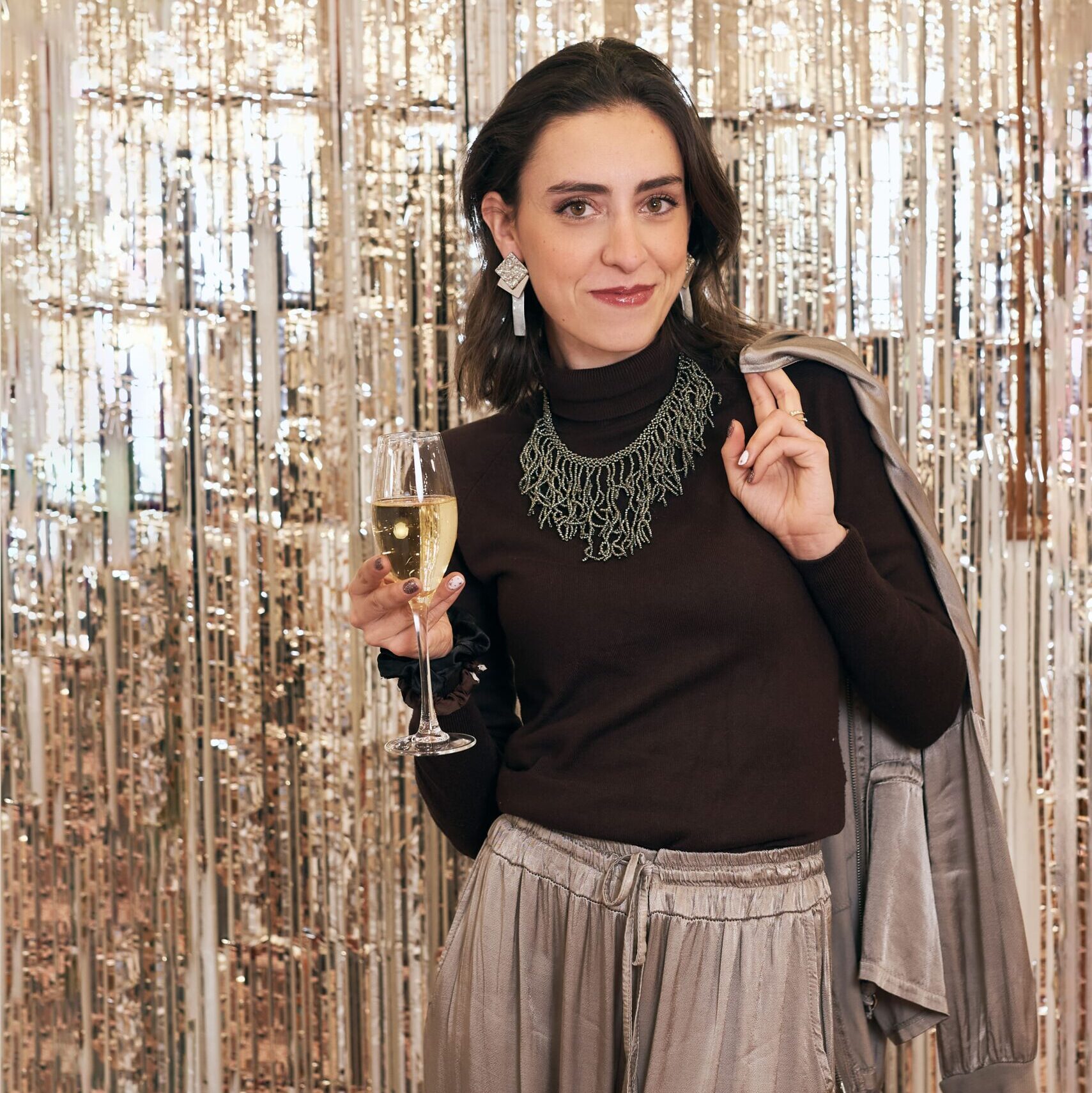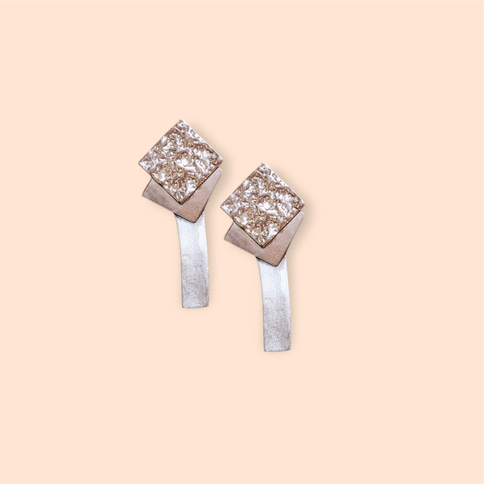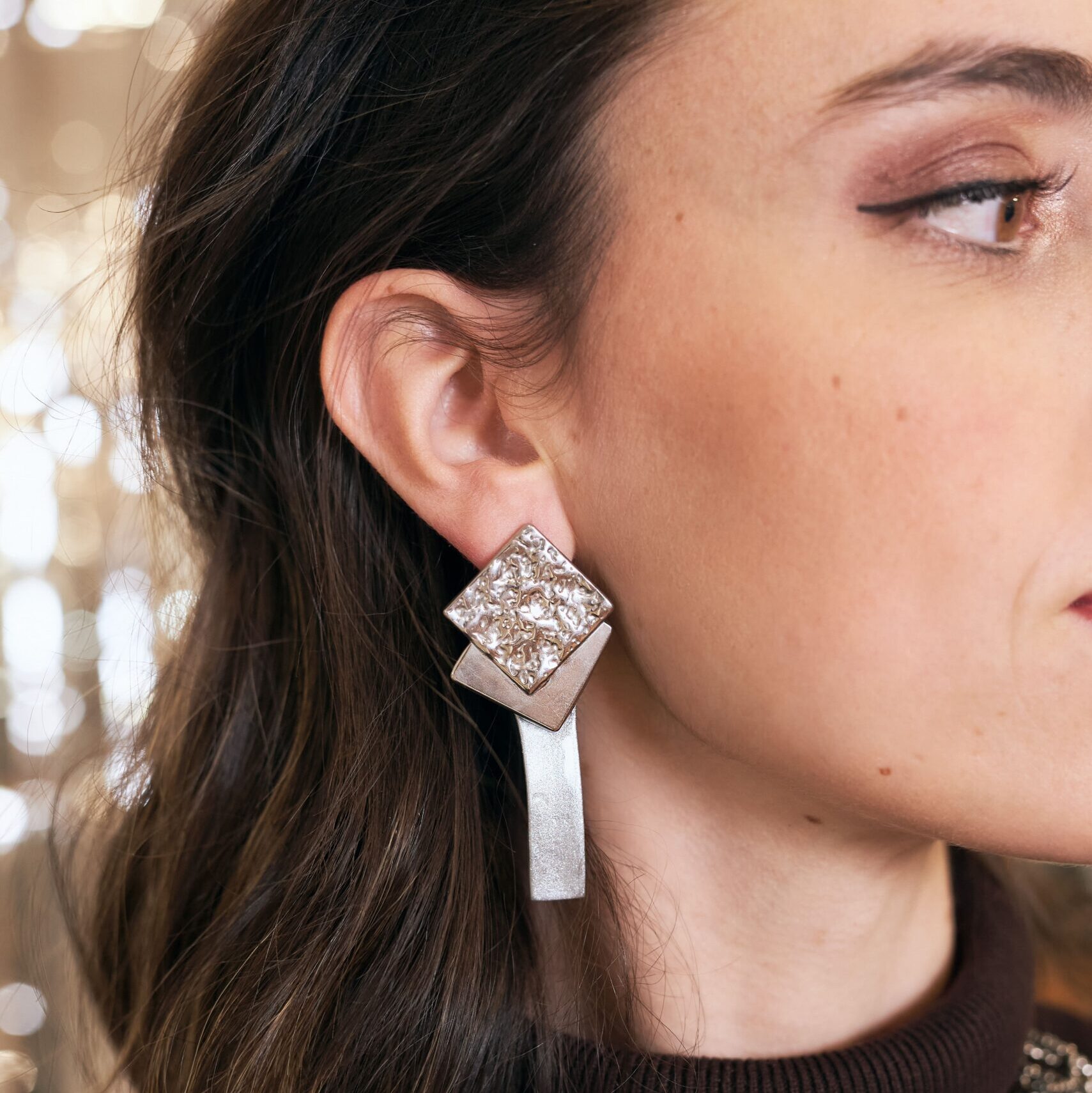 Pendientes de arcilla polimérica en color gris metalizado con pieza de acero inoxidable plateado y brillo, potenciando sus destellos