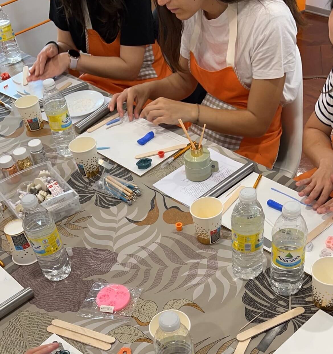 Mientras tus piezas se hornean, disfrutaremos de un picoteo y resolveré todas tus dudas para que aproveches al máximo la experiencia.