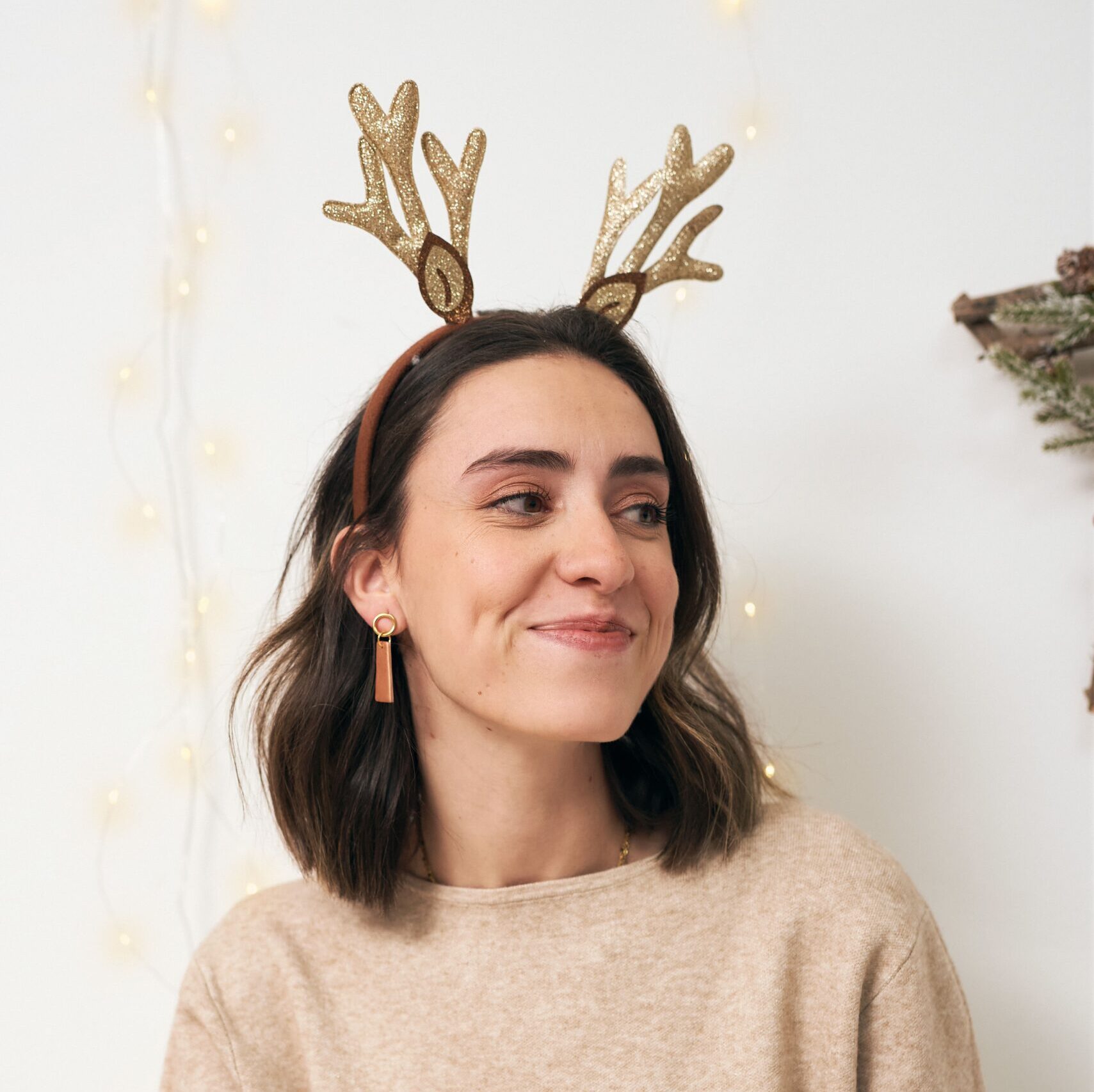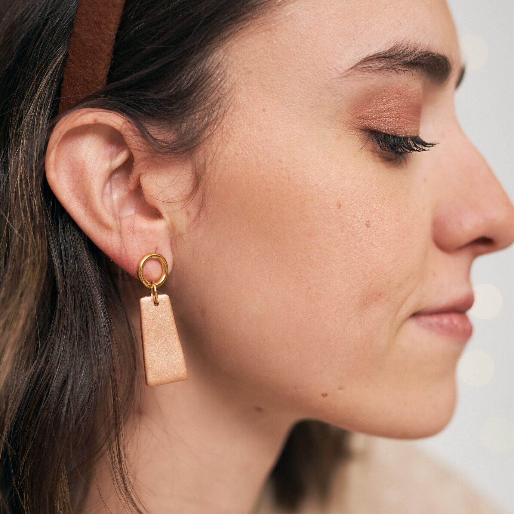 Pendientes de arcilla polimérica en color nude metalizado con pieza de acero inoxidable dorado