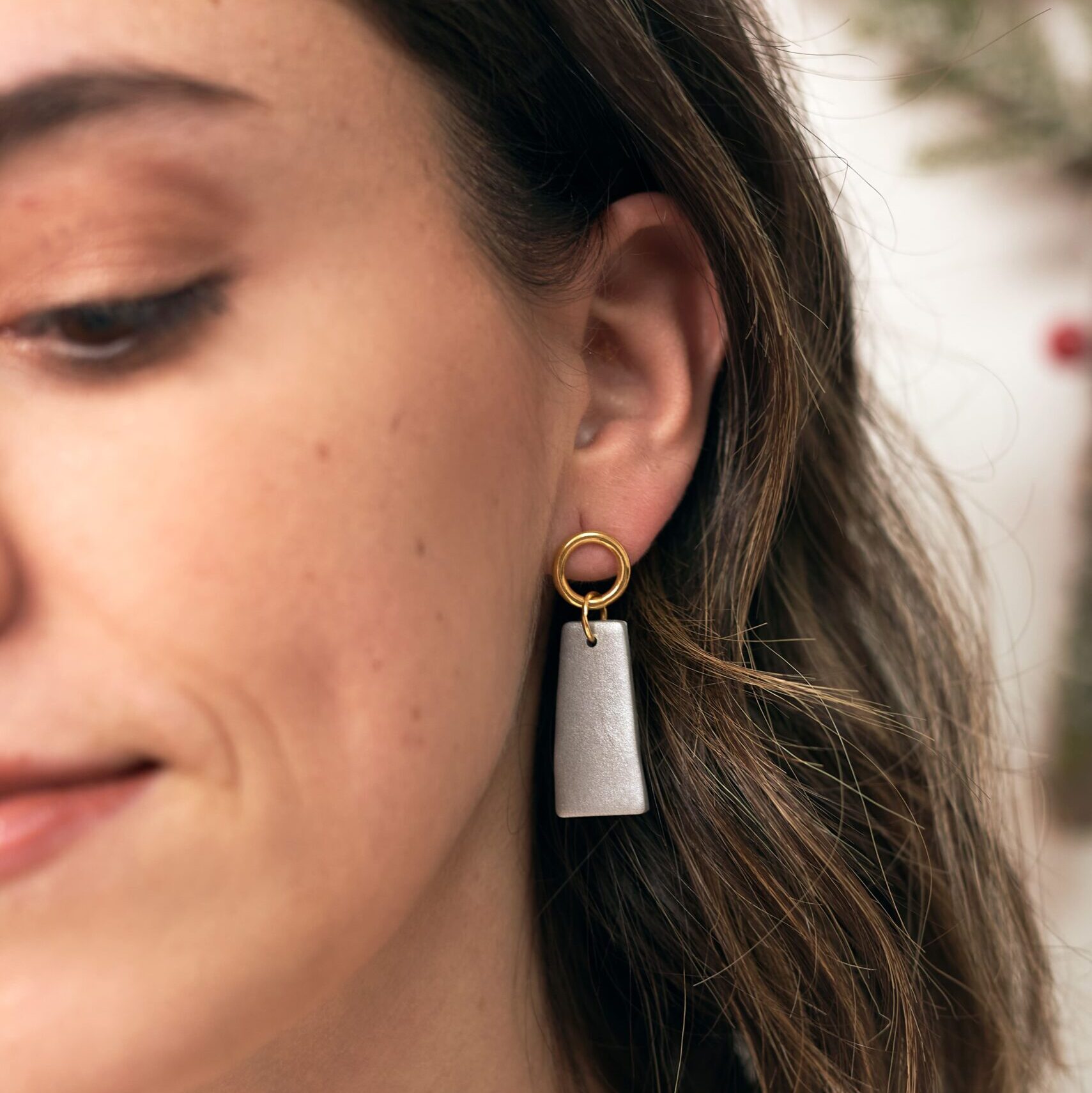 Pendientes de arcilla polimérica en color nude metalizado con pieza de acero inoxidable dorado