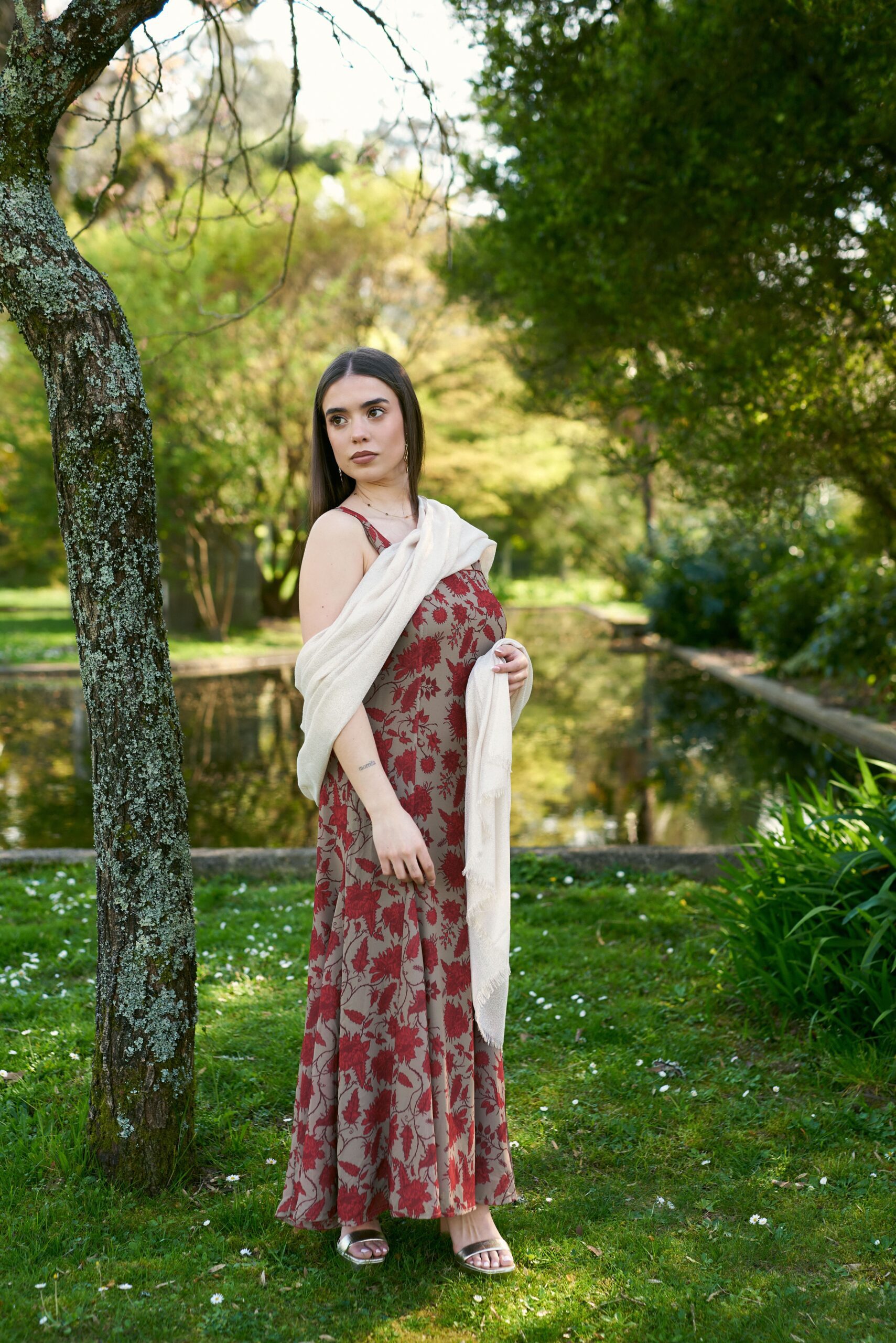 Vestido suelto, con unas pequeñas pinzas en la parte inferior que le dan un vuelo perfecto.