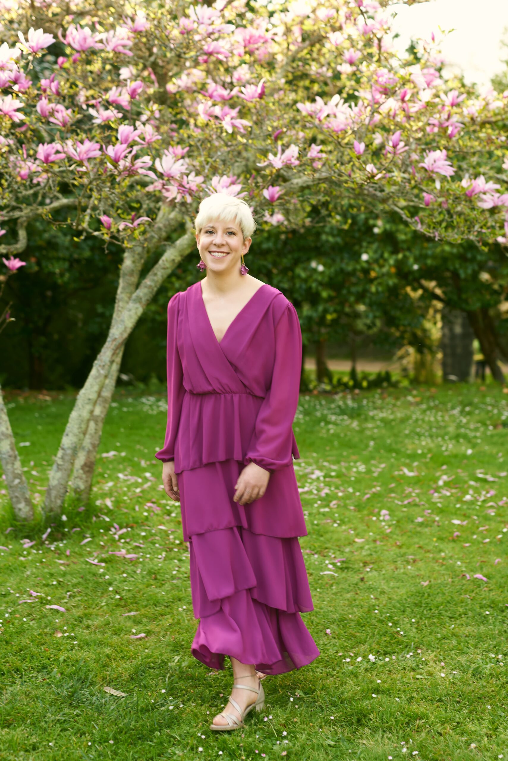 Vestido de volantes, con goma debajo del pecho